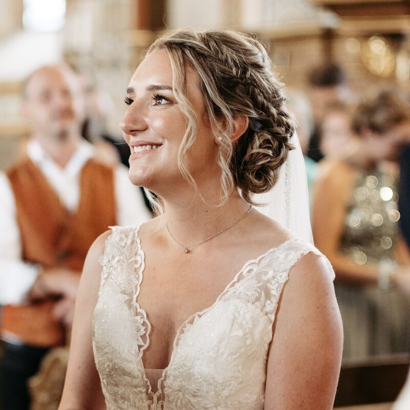 Schon seit fünf Jahren darf ich Bräute an ihrem Hochzeitstag zum Strahlen bringen. Bis heute ist es jedes Mal ein einzigartiger Moment, wenn sich die Braut fertig gestylt im Spiegel ansieht und diese ganz besondere Leuchtkraft besitzt.